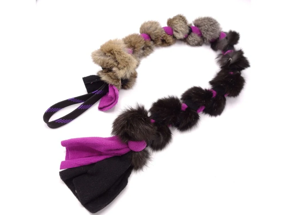 Flísové přetahovadlo pro psy s králičí kožešinou – velké, ostružinová